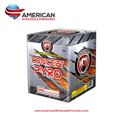 Concept Pyro (DM238) is a 200 Gram Cake from Dominator Fireworks. This 25-shot cake will give you plenty of power and crackle!