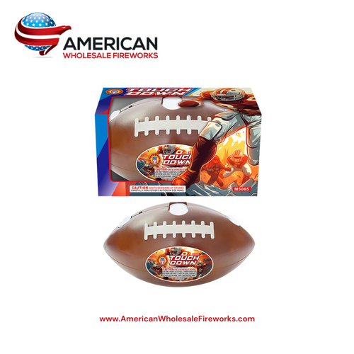 Go Touch Down with this magic football fountain! It starts with a bright silver fountain and then emits a W-angle silver strobe with silver flying fishes! What a cool football!